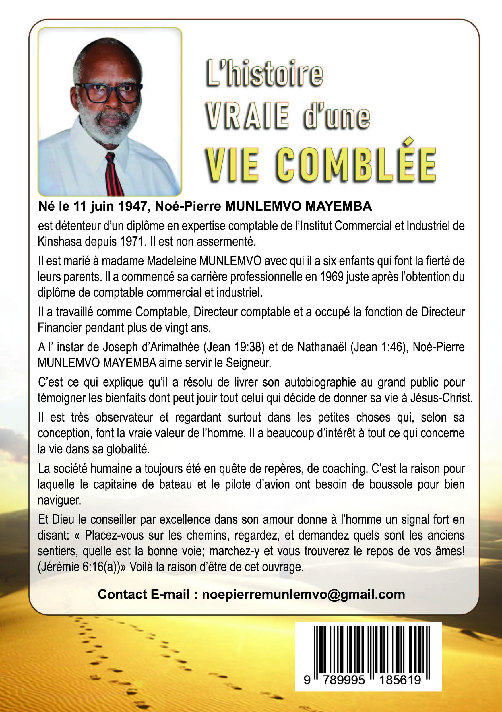 L’histoire vraie d’une vie comblée est l’œuvre de M. Noé-Pierre Munlemvo Mayemba, qui se veut un témoignage vivant des bienfaits de la marche avec Jésus-Christ.